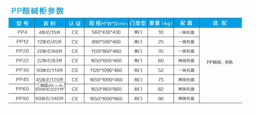 由于强酸强碱类化学品的性质,所以我们在存储的时候只能选购PP材质的存储柜。PP俗称聚丙烯