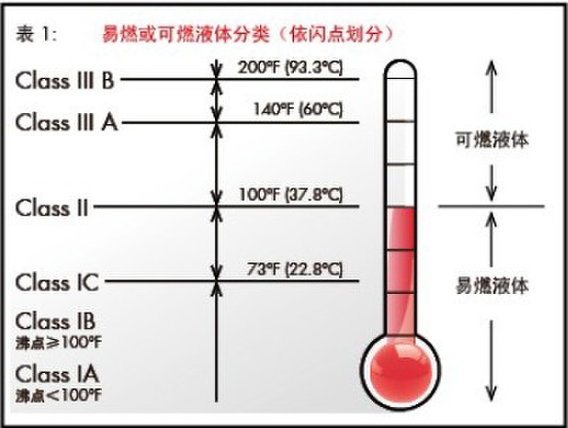 易燃液体是指属于IA-IC类的I类化学液体【闪点】<100°F(37.8℃),详见示意图